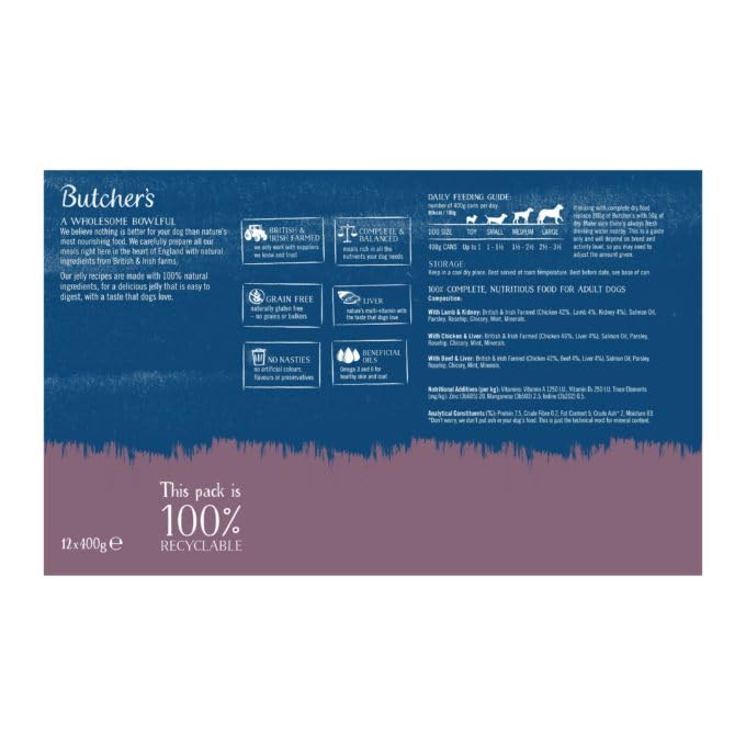 Butcher's Recipes in Jelly Dog Food Tins Variety Pack 24x400g
