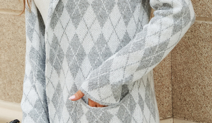 Elevate your wardrobe with our stunning Long Sweater Contrast Houndstooth Knit Cardigan Trench Coat. Crafted from a luxurious blend of acrylic and polyester, this cardigan combines comfort with a chic, sophisticated style that you can effortlessly pair with any outfit.